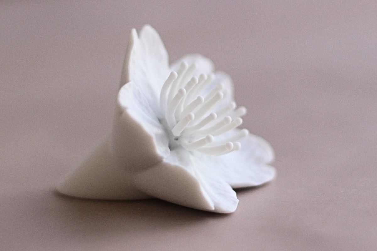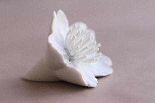 花びらの筋の表現に加え、めしべの一本一本までを手作業で成形・彫刻。