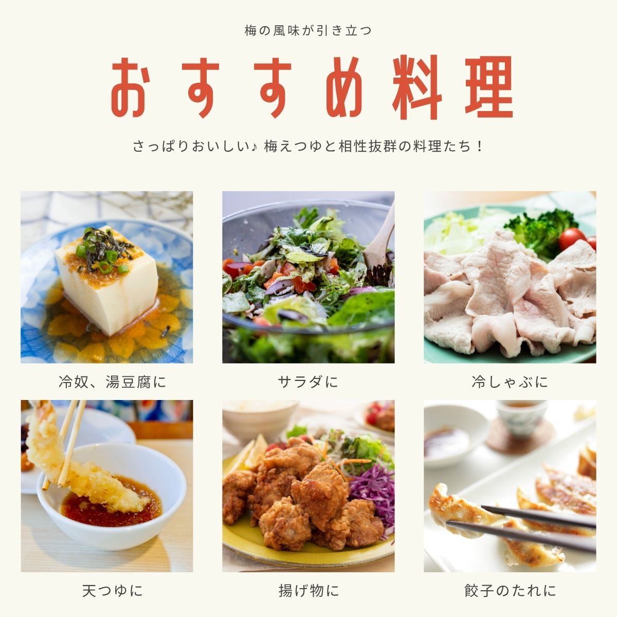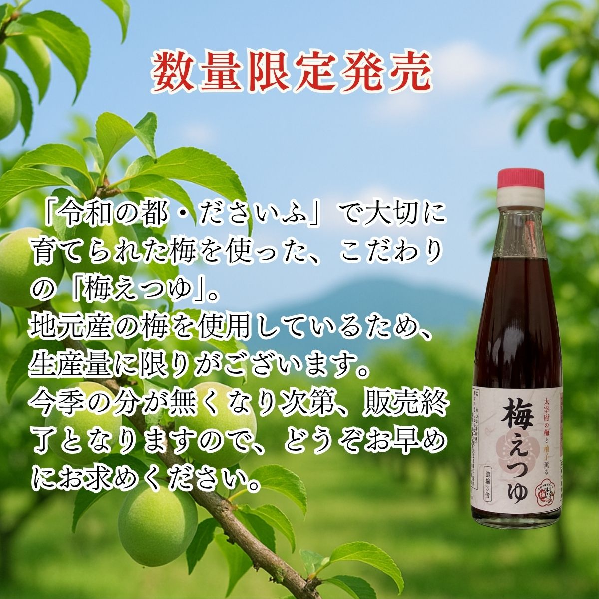 太宰府の自然が育んだ「梅酢」と、さわやかな柚子果汁と和歌山の老舗醤油メーカーの白醤油とを絶妙にブレンドした爽やかな麺つゆです。化学調味料やエキス類に頼らず、素材の旨味をじっくり引き出しました。